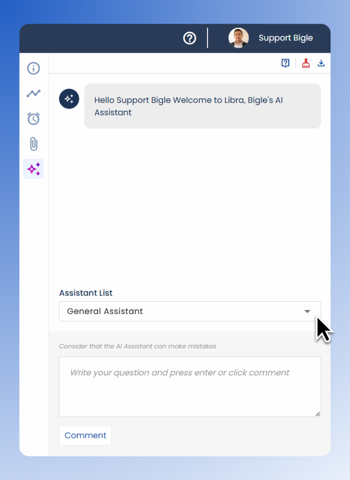 Create, save, and manage specialized artificial intelligence assistants to customize Libra usage according to your organization's legal playbook.