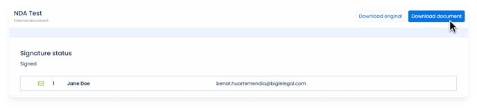 The envelope icon next to each signatory will appear in green when each signatory has completed signing the document.