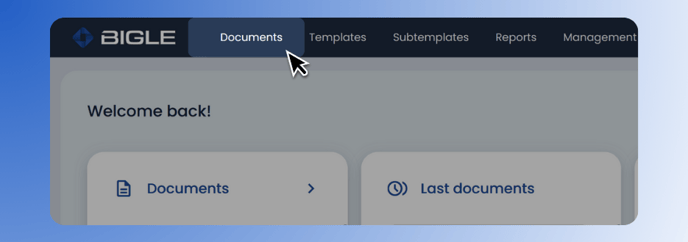 - The first step is to navigate to the Documents section of the main menu to view the full list of documents: