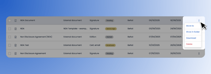 - Then, use the three dots on the right side of the document to move it to a folder, download it or delete it: