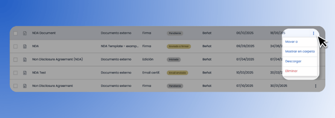 - Luego, utiliza los tres puntos que aparecen a la derecha del documento para moverlo a una carpeta, eliminarlo o descargarlo: